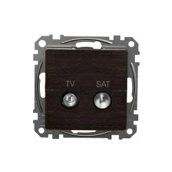 Gniazdo TV/SAT przelotowe (10dB), wenge, efekt drewna, to osprzęt serii Sedna Design & Elements marki Schneider Electric. Gniazdo TV/SAT przelotowe (10dB) jest powlekane tworzywem w kolorze wenge i posiada następujące wymiary: szerokość 73 mm, wysokość 73 mm, głębokość 34 mm, głębokość wystawania 17.4 mm. Gniazdo charakteryzuje się stopniem ochrony IP20. Do produkcji gniazda wykorzystano tworzywo termoplastyczne o zwiększonej odporności na promieniowanie UV, które doskonale imituje naturalne materiały. Produkt jest montowany podtynkowo. Uwaga: produkty Sedna Design & Elements nie są kompatybilne z serią Sedna!