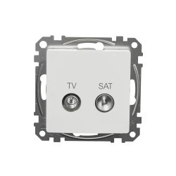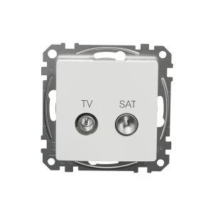 Gniazdo TV/SAT przelotowe (7dB), białe, to osprzęt serii Sedna Design & Elements marki Schneider Electric. Gniazdo TV/SAT przelotowe (7dB) ma lśniące wykończenie powierzchni w kolorze białym i posiada następujące wymiary: szerokość 73 mm, wysokość 73 mm, głębokość 34 mm , głębokość wystawania 17.4 mm. Gniazdo charakteryzuje się stopniem ochrony IP20. Do produkcji gniazda wykorzystano tworzywo termoplastyczne o zwiększonej odporności na promieniowanie UV. Produkt jest montowany podtynkowo. Uwaga: produkty Sedna Design & Elements nie są kompatybilne z serią Sedna!