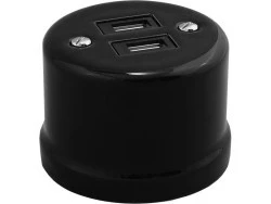Podwójne gniazdo USB natynkowe z serii 'Retro Ceramic' w czarnym kolorze to stylowe i funkcjonalne rozwiązanie do ładowania urządzeń elektronicznych. Wykonane z ceramiki, posiada gładką, lśniącą powierzchnię, która doskonale wpisuje się w aranżacje w stylu retro, loft oraz boho. Umożliwia jednoczesne ładowanie dwóch urządzeń z maksymalnym prądem 3.2A, zapewniając wygodę i elegancję w jednym.