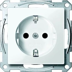 Gniazdo wtykowe SCHUKO, z przesłoną, b.śrub., B.P, P, Sys M. rodzina produktów: Merten System M - nazwa serii: M-Arc, M-Elegance, M-Plan, M-Plan glass, M-Smart, M-Star, System M - typ produktu: wypust mocy - gniazdo standardowe: niemiecki. Zalety: Nieograniczone możliwości., System M serii Merten jest międzynarodowym programem, w którego ofercie znajdują się wszystkie niezbędne typy łączników i gniazd.. Szeroki zakres typów wykończenia, kolorów, wariantów serii zapewniających pełną modułowość., Oferując ponad 150 funkcji, System Merten oferuje rozwiązania związane ze sterowaniem oświetleniem, gniazdami i łącznikami, VDI, sygnalizacją, elektronicznym sterowaniem oświetleniem ze ściemniaczami i czujkami ruchu, sterowaniem żaluzjami i roletami, sterowaniem temperaturą oraz produkty dedykowane dla szpitali i hoteli., System M linii Merten zawiera dodatkowo unikalną i znakomitą ofertę dla systemów KNX, z wysokiej jakości przyciskami, wyświetlaczami oraz czujkami ruchu i obecności., W przypadku odnawiania lub renowacji pomieszczeń, System M ma do zaoferowania najnowszą technologię, system sterowania radiowego, w pełni zgodny z estetyką poszczególnych programów Merten osprzętu elektroinstalacyjnego., Do wszystkich rodzajów instalacji.. Zastosowanie: Rozwiązania Systemu M przygotowane są do wszelkich możliwych rodzajów zastosowań, zarówno w budownictwie mieszkaniowym, jak i usługowym, np. W hotelach, biurach, szkołach....