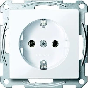 Gniazdo wtykowe SCHUKO, zaciski bezśrubowe, biały active, połysk, system M. rodzina produktów: Merten System M - nazwa serii: M-Arc, M-Elegance, M-Plan, M-Plan glass, M-Smart, M-Star, System M - typ produktu: wypust mocy - gniazdo standardowe: niemiecki. Zalety: Nieograniczone możliwości., System M serii Merten jest międzynarodowym programem, w którego ofercie znajdują się wszystkie niezbędne typy łączników i gniazd.. Szeroki zakres typów wykończenia, kolorów, wariantów serii zapewniających pełną modułowość., Oferując ponad 150 funkcji, System Merten oferuje rozwiązania związane ze sterowaniem oświetleniem, gniazdami i łącznikami, VDI, sygnalizacją, elektronicznym sterowaniem oświetleniem ze ściemniaczami i czujkami ruchu, sterowaniem żaluzjami i roletami, sterowaniem temperaturą oraz produkty dedykowane dla szpitali i hoteli., System M linii Merten zawiera dodatkowo unikalną i znakomitą ofertę dla systemów KNX, z wysokiej jakości przyciskami, wyświetlaczami oraz czujkami ruchu i obecności., W przypadku odnawiania lub renowacji pomieszczeń, System M ma do zaoferowania najnowszą technologię, system sterowania radiowego, w pełni zgodny z estetyką poszczególnych programów Merten osprzętu elektroinstalacyjnego., Do wszystkich rodzajów instalacji.. Zastosowanie: Rozwiązania Systemu M przygotowane są do wszelkich możliwych rodzajów zastosowań, zarówno w budownictwie mieszkaniowym, jak i usługowym, np. W hotelach, biurach, szkołach....
