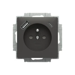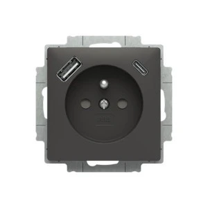 Gniazdo z bolcem i przesłonami, 2x USB A+C ZONI czarny matowy 5569T‑A32357 237 2CHT693257A4237