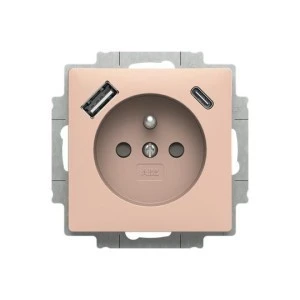 Gniazdo z bolcem i przesłonami, 2x USB A+C ZONI pudrowy beżowy 5569T‑A32357 242 2CHT693257A4242