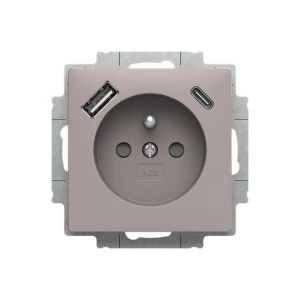Gniazdo z bolcem i przesłonami, 2x USB A+C ZONI szary beżowy 5569T‑A32357 244 2CHT693257A4244