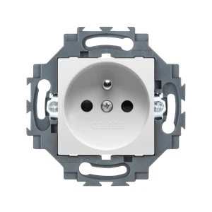 Gniazdo Schuko 2P+E 16A z przesłonami styków, z uziemieniem, samozaciski, białe, Dahlia GW35206W