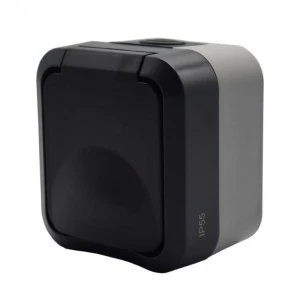 Gniazdo z uziemieniem pojedyncze natynkowe Aqua Pro IP55 szaro grafitowe klapka dymna / 60326