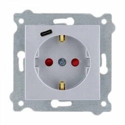 Gniazdo z uziemieniem Schuko 2P+E i przesłonami torów prądowych + gniazdo Typ C Srebrny 274/10E EXEN