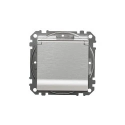 Gniazdo zasilające 2P+PE z przesłonami torów prądowych IP44, szczotkowane aluminium, efekt metalu, to osprzęt serii Sedna Design & Elements marki Schneider Electric. Gniazdo zasilające ma lśniące wykończenie powierzchni w kolorze szczotkowanego aluminium i posiada następujące wymiary: szerokość 73 mm, wysokość 73 mm, głębokość 50 mm, głębokość wystawania 29 mm. Długość izolacji zdejmowanej z kabla to 13 mm. Gniazdo charakteryzuje się stopniem ochrony IP44 i zakresem mocy wynoszącym 3680 W. Do produkcji gniazda wykorzystano tworzywo termoplastyczne o zwiększonej odporności na promieniowanie UV, które doskonale imituje naturalne materiały. Produkt jest montowany podtynkowo i posiada Zaciski śrubowe. Uwaga: produkty Sedna Design & Elements nie są kompatybilne z serią Sedna!