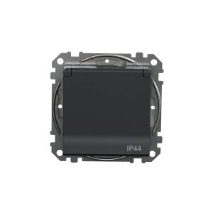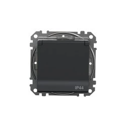 Gniazdo zasilające 2P+PE z przesłonami torów prądowych, zaciski bezgwintowe IP44, czarny antracyt, to osprzęt serii Sedna Design & Elements marki Schneider Electric. Gniazdo zasilające ma malowane wykończenie powierzchni w kolorze czarnego antracytu i posiada następując e wymiary: szerokość 73 mm, wysokość 73 mm, głębokość 50 mm, głębokość wystawania 29 mm. Długość izolacji zdejmowanej z kabla to 13 mm. Gniazdo charakteryzuje się stopniem ochrony IP44 i zakresem mocy wynoszącym 3680 W. Do produkcji gniazda wykorzystano tworzywo termopl astyczne o zwiększonej odporności na promieniowanie UV. Produkt jest montowany podtynkowo i posiada zaciski bezśrubowe. Uwaga: produkty Sedna Design & Elements nie są kompatybilne z serią Sedna!