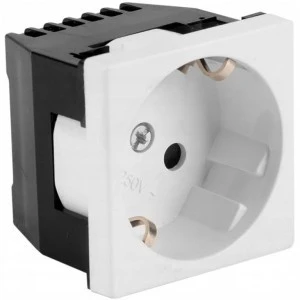 Pojedyncze gniazdo elektryczne M45 schuko 2P+Z w kolorze białym to moduł do systemów 45x45 mm, kompatybilny m.in. z Mediabox, Simon K45 oraz Legrand Mosaic.