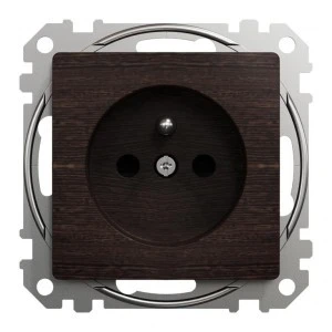 Gniazdo zasilające 2P+PE z przesłonami torów prądowych, zaciski bezgwintowe, wenge, efekt drewna, to osprzęt serii Sedna Design & Elements marki Schneider Electric. Gniazdo zasilające ma satynowe wykończenie powierzchni w kolorze wenge i posiada następujące wymiary: szerokość 73 mm, wysokość 73 mm, głębokość 38 mm, głębokość wystawania 29 mm. Długość izolacji zdejmowanej z kabla to 13 mm. Gniazdo charakteryzuje się stopniem ochrony IP20 i zakresem mocy wynoszącym 3680 W. Do produkcji gniazda wykorzystano tworzywo termoplastyczne o zwiększonej odporności na promieniowanie UV, które doskonale imituje naturalne materiały. Produkt jest montowany podtynkowo i posiada zaciski bezśrubowe. Uwaga: produkty Sedna Design & Elements nie są kompatybilne z serią Sedna!