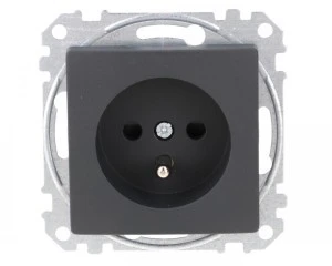 Gniazdo zasilające 2P+PE z przesłonami torów prądowych, zaciski bezgwintowe, czarny antracyt, to osprzęt serii Sedna Design & Elements marki Schneider Electric. Gniazdo zasilające ma malowane wykończenie powierzchni w kolorze czarnego antracytu i posiada następujące wymiary: szerokość 73 mm, wysokość 73 mm, głębokość 38 mm, głębokość wystawania 29 mm. Długość izolacji zdejmowanej z kabla to 13 mm. Gniazdo charakteryzuje się stopniem ochrony IP20 i zakresem mocy wynoszącym 3680 W. Do produkcji gniazda wykorzystano tworzywo termoplastyczne o zwiększonej odporności na promieniowanie UV. Produkt jest montowany podtynkowo i posiada zaciski bezśrubowe. Uwaga: produkty Sedna Design & Elements nie są kompatybilne z serią Sedna!
