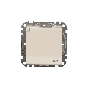 Gniazdo zasilające 2P+PE z przesłonami torów prądowych, zaciski bezgwintowe IP44, beżowy, to osprzęt serii Sedna Design & Elements marki Schneider Electric. Gniazdo zasilające ma lśniące wykończenie powierzchni w kolorze beżowym i posiada następujące wymiary: szerokość 73 mm, wysokość 73 mm, głębokość 50 mm, głębokość wystawania 29 mm. Długość izolacji zdejmowanej z kabla to 13 mm. Gniazdo charakteryzuje się stopniem ochrony IP44 i zakresem mocy wynoszącym 3680 W. Do produkcji gniazda wykorzystano tworzywo termoplastyczne o zwiększone j odporności na promieniowanie UV. Produkt jest montowany podtynkowo i posiada zaciski bezśrubowe. Uwaga: produkty Sedna Design & Elements nie są kompatybilne z serią Sedna!