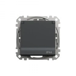 Gniazdo zasilające 2P+PE z przesłonami torów prądowych IP44, czarny antracyt, to osprzęt serii Sedna Design & Elements marki Schneider Electric. Gniazdo zasilające ma malowane wykończenie powierzchni w kolorze czarnego antracytu i posiada następujące wymiary: szerokość 73 mm, wysokość 73 mm, głębokość 50 mm, głębokość wystawania 29 mm. Długość izolacji zdejmowanej z kabla to 13 mm. Gniazdo charakteryzuje się stopniem ochrony IP44 i zakresem mocy wynoszącym 3680 W. Do produkcji gniazda wykorzystano tworzywo termoplastyczne o zwiększonej odporności na promieniowanie UV. Produkt jest montowany podtynkowo i posiada Zaciski śrubowe. Uwaga: produkty Sedna Design & Elements nie są kompatybilne z serią Sedna!
