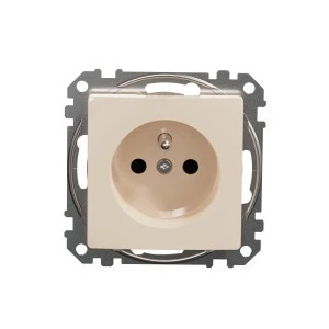 Gniazdo zasilające 2P+PE z przesłonami torów prądowych, beżowe, to osprzęt serii Sedna Design & Elements marki Schneider Electric. Gniazdo zasilające ma lśniące wykończenie powierzchni w kolorze beżowym i posiada następujące wymiary: szerokość 73 mm, wysokość 73 mm, głę bokość 38 mm, głębokość wystawania 29 mm. Długość izolacji zdejmowanej z kabla to 13 mm. Gniazdo charakteryzuje się stopniem ochrony IP20 i zakresem mocy wynoszącym 3680 W. Do produkcji gniazda wykorzystano tworzywo termoplastyczne o zwiększonej odporności na promieniow anie UV. Produkt jest montowany podtynkowo i posiada zaciski śrubowe. Uwaga: produkty Sedna Design & Elements nie są kompatybilne z serią Sedna!