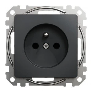 Gniazdo zasilające 2P+PE z przesłonami torów prądowych, czarny antracyt, to osprzęt serii Sedna Design & Elements marki Schneider Electric. Gniazdo zasilające ma malowane wykończenie powierzchni w kolorze czarnego antracytu i posiada następujące wymiary: szerokość 73 mm, wysokość 73 mm, głębokość 38 mm, głębokość wystawania 29 mm. Długość izolacji zdejmowanej z kabla to 13 mm. Gniazdo charakteryzuje się stopniem ochrony IP20 i zakresem mocy wynoszącym 3680 W. Do produkcji gniazda wykorzystano tworzywo termoplastyczne o zwiększonej odporności na promieniowanie UV. Produkt jest montowany podtynkowo i posiada zaciski śrubowe. Uwaga: produkty Sedna Design & Elements nie są kompatybilne z serią Sedna!