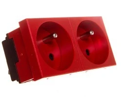 Gniazdo jest modelem podwójnym. Każda z jednostek została wyposażona w bolce uziemiający. Warto znać parametry elektryczne, przy jakich może pracować to gniazdo. Działa ono bowiem przy napięciu znamionowym o wartości 250 V, a z kolei wartość prądu znamionowego jest równa 16 A. Ten model jest dostępny w wyrazistym, czerwonym kolorze.