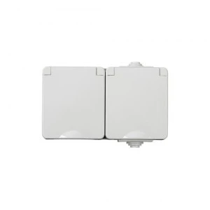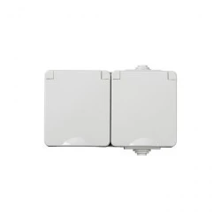 Gniazdo zasilające francuskie z ochroną styków, Długość [mm]: 128, Szerokość [mm]: 51, Wysokość [mm]: 74, Klasa ochronności przed porażeniem elektrycznym: I, Kolor: szary, Liczba gniazd: 2, Materiał: ABS,PC, Miejsce montażu: do nadbudowania na ścianie, Napięcie znamionowe [V]: 250 AC, Ochrona styków: 1, Prąd znamionowy [A]: 16, Rodzaj uziemienia: typu E, Rodzaj zacisku: zacisk śrubowy, Stopień IP: 65, Zakres przekrojów stosowanych przewodów [mm2]: <10.