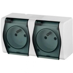 Podwójne gniazdo zasilające natynkowe hermetyczne HERMES IP44 to trwały osprzęt instalacyjny przeznaczony do bezpiecznego zasilania urządzeń w wymagających warunkach pracy.