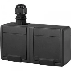 Podwójne gniazdo natynkowe AQUANT™ 2K IP65 zapewnia niezawodne zasilanie w wymagających warunkach, dzięki hermetycznej konstrukcji odpornej na wodę, pył oraz promieniowanie UV.
