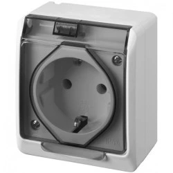 Gniazdo zasilające pojedyncze natynkowe hermetyczne IP44 białe z klapką transparentną [2P+Z] Schuko 16A HERMES ELEKTRO-PLAST NASIELSK