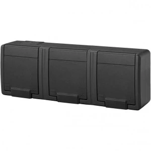 Potrójne gniazdo natynkowe AQUANT™ 2K IP55 zapewnia niezawodne zasilanie w wymagających warunkach, dzięki hermetycznej konstrukcji odpornej na wodę, pył oraz promieniowanie UV.