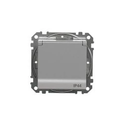 Gniazdo zasilające schuko z przesłonami torów prądowych IP44, srebrne aluminium, to osprzęt serii Sedna Design & Elements marki Schneider Electric. Gniazdo zasilające ma malowane wykończenie powierzchni w kolorze srebrnego aluminium i posiada następujące wymiary: szerok ość 73 mm, wysokość 73 mm, głębokość 50 mm, głębokość wystawania 29 mm. Długość izolacji zdejmowanej z kabla to 13 mm. Gniazdo charakteryzuje się stopniem ochrony IP44 i zakresem mocy wynoszącym 3680 W. Do produkcji gniazda wykorzystano tworzywo termoplastyczne o zwięks zonej odporności na promieniowanie UV. Produkt jest montowany podtynkowo i posiada zaciski śrubowe. Uwaga: produkty Sedna Design & Elements nie są kompatybilne z serią Sedna!