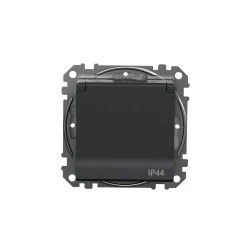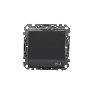 Gniazdo zasilające schuko z przesłonami torów prądowych IP44, czarny antracyt, to osprzęt serii Sedna Design & Elements marki Schneider Electric. Gniazdo zasilające ma malowane wykończenie powierzchni w kolorze czarnego antracytu i posiada następujące wymiary: szerokość 73 mm, wysokość 73 mm, głębokość 50 mm, głębokość wystawania 29 mm. Długość izolacji zdejmowanej z kabla to 13 mm. Gniazdo charakteryzuje się stopniem ochrony IP44 i zakresem mocy wynoszącym 3680 W. Do produkcji gniazda wykorzystano tworzywo termoplastyczne o zwiększon ej odporności na promieniowanie UV. Produkt jest montowany podtynkowo i posiada zaciski śrubowe. Uwaga: produkty Sedna Design & Elements nie są kompatybilne z serią Sedna!
