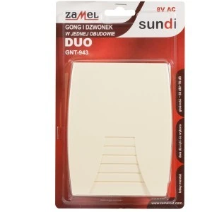 Połączenie dzwonka dwutonowego i gongu dwutonowego BIM-BAM w jednej obudowie ,umożliwia rozpoznanie po dźwięku miejsca przyzywania (np. drzwi wejściowe i furtka ogrodowa,obudowa z tworzywa sztucznego (kolor beżowy),pozostałe dane jak: dzwonek dwutonowy i gong dwutonowy BIM-BAM,poziom dźwięku: ok. 68 dB/78 dB.