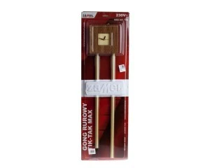 Gong elektromechaniczny,obudowa z tworzywa sztucznego,maskownica w postaci zegara kwarcowego o drewnianej obudowie wykonanej z dębu lub brzozy (kolor elegance) i tarczy w kolorze srebra,zegar zasilany baterią R6 1,5 V,dwie mosiężne rury generujące dźwięk,dźwięk: dwa tony – BIM-BAM (dźwięk jak w gongu rurowym),poziom dźwięku: ok. 82 dB.