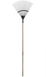Grabie z drutu do zgarniania liści, 22-zębowe, drut sprężysty, trzon drewniany buk typ P-130