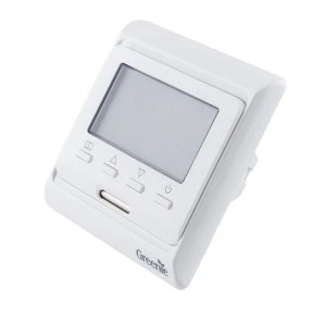 Termostat Greenie T005 wyposażony jest w czytelny ekran LCD z podświetleniem, wiele funkcji programowania 24/7 oraz dwa sensory temperatury. Maksymalne obciążenie termostatu to 16A (3680W). Jest to np. 16m2 maty grzewczej Greenie w jednym obwodzie. Dla sterowania większych obwodów stosuje się dodatkowe styczniki. Termostat Greenie T005 wyposażony jest w intuicyjne menu ułatwiające sterowanie programatora. Termostat automatycznie steruje ogrzewaniem wpływając na komfort użytkowania oraz znaczące ograniczenie kosztów ogrzewania. Jeżeli temperatura spadnie poniżej ustawionej, urządzenie włacza ogrzewanie. Gdy temperatura wzrośnie termostat wyłącza ogrzewanie.