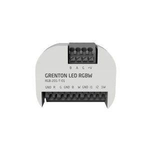 Grenton LED RGBW umożliwia płynne i pełne sterowanie oświetleniem LED, oświetleniem halogenowym wykorzystującym sygnał PWM. Moduł może pełnić rolę kontrolera oświetlenia typu LED RGBW oraz pracować jako czterokanałowy ściemniacz oświetlenia LED. Pozwala na podłączenie do systemu 2 wejść cyfrowych oraz do 2 czujników temperatury po 1-Wire.