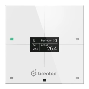 CZTEROPRZYCISKOWY, DOTYKOWY PANEL ŚCIENNY, WYPOSAŻONY W WYŚWIETLACZ OLED ORAZ MOŻLIWOŚĆ STEROWANIA ZA POMOCĄ GESTÓW DŁONI.