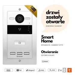 - Komfort obsługi podnosi współpraca z telefonami VoIP oraz możliwość zdalnego sterowania przez smartfony z aplikacją Tuya Smart bez konieczności instalowania odbiornika wewnętrznego wideodomofonu.
