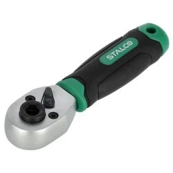 Grzechotka do bitów i nasadek to funkcjonalne ręczne narzędzie warsztatowe. Przydaje się przy dokręcaniu i odkręcaniu większości akcesoriów złącznych, takich jak wkręty czy śruby. Ma niewielkie wymiary i jest wyposażona w najmniejszy ćwierćcalowy trzpień na nasadki. Mechanizm zapadkowy ma aż 72 zęby. Te cechy sprawiają, że grzechotka do bitów i nasadek STALCO sprawdza się przy najbardziej precyzyjnych zadaniach. Narzędzie wykonano ze stali chromowo-wanadowej, a ergonomiczny uchwyt z tworzywa sztucznego. Dzięki temu grzechotka jest trwała i sprawdzi się w warunkach warsztatowych, budowlanych i przy pracach pomocniczych w zakładach przemysłowych. Niewielkie wymiary ułatwią też przechowywanie grzechotki.