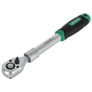 Uniwersalna grzechotka teleskopowa to bardzo użyteczne narzędzie ręczne. Przydaje się przy różnego rodzaju pracach związanych z dokręcaniem i odkręcaniem elementów gwintowanych. Grzechotki są wyposażone w trzpienie narzędziowe, na których można osadzić końcówki 1/4, 3/8 i 1/2 cala. Teleskopowa konstrukcja pozwala na zwiększenie długości trzpienia pomiędzy końcówką roboczą i uchwytem. To ułatwia pracę w trudnych przestrzeniach i z użyciem większej siły. Grzechotka teleskopowa STALCO jest wyposażona w mechanizm zębatkowy z możliwością zmiany kierunku działania zapadki. Wyposażony jest w 72 ząbki, co gwarantuje precyzję pracy. Trzpień i głowa klucza są wykonane z trwałego wytopu stali CrV, co gwarantuje trwałość narzędzia. W ofercie STALCO grzechotka teleskopowa jest dostępna w trzech wariantach. Różnią się one wymiarem trzpienia roboczego, a także zakresem długości, w jakich mogą pracować.