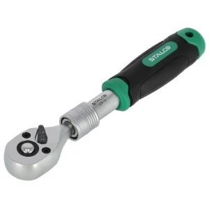 Uniwersalna grzechotka teleskopowa to bardzo użyteczne narzędzie ręczne. Przydaje się przy różnego rodzaju pracach związanych z dokręcaniem i odkręcaniem elementów gwintowanych. Grzechotki są wyposażone w trzpienie narzędziowe, na których można osadzić końcówki 1/4, 3/8 i 1/2 cala. Teleskopowa konstrukcja pozwala na zwiększenie długości trzpienia pomiędzy końcówką roboczą i uchwytem. To ułatwia pracę w trudnych przestrzeniach i z użyciem większej siły. Grzechotka teleskopowa STALCO jest wyposażona w mechanizm zębatkowy z możliwością zmiany kierunku działania zapadki. Wyposażony jest w 72 ząbki, co gwarantuje precyzję pracy. Trzpień i głowa klucza są wykonane z trwałego wytopu stali CrV, co gwarantuje trwałość narzędzia. W ofercie STALCO grzechotka teleskopowa jest dostępna w trzech wariantach. Różnią się one wymiarem trzpienia roboczego, a także zakresem długości, w jakich mogą pracować.