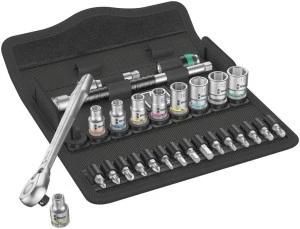 Małe rozmiary i niewielka masa zapewniają użytkownikom dużą mobilność. 1 grzechotka Zyklop Metal z zabierakiem 1/4" i przełącznikiem zmiany kierunku pracy, 9 kluczy nasadowych Zyklop, 1 przedłużacz Zyklop (długi) z tuleją obrotową, 1 przedłużacz Wobble, 1 adapter z mechanizmem szybkomocującym, 15 grotów