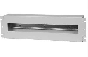 Panel dystrybucji napięć, standardowo wyposażony w szynę TS-35 oraz osłonę z otworem przeznaczony do montażu w szafach RACK 19" aparatury modułowej.