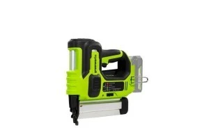 Gwoździarka Greenworks GD24BN to profesjonalne narzędzie do wbijania sztyftów o długości maksymalnej 50 mm. W prawidlowym osadzeniu całego gwoździa z pomoca idzie płynna regulacja siły wbijania (pokrętło). Narzędzie posiada ciekawą funckcję - mianowicie możliwość wbijania gwoździ seriami. Po wciśnięciu na stale spustu wystarczy odrywać gwoździarkę i przykładać w kolejne miejsce - gwoździarka sama będzie wbijała kolejnego gwoździa (bez puszczania spustu). Zabezpieczenie przed omyłkowym strzałem zapewnia bezpieczeństwo funkcjonowania.