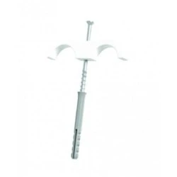 Hak podłogowy podwójny do rur od Ø 14 do Ø 25 z kołkiem do wbijania 6x40 i wkrętem 4,8x75, średnica wiertła Ø 6 (50szt.) - OP 02 SM