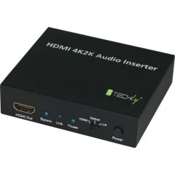 Umożliwia integrację zewnętrznego sygnału audio z sygnałem źródłowym HDMI i przesłanie do wyświetlacza HDMI