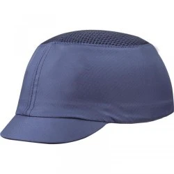 Hełm lekki typu baseball z tkaniny poliestrowo-bawełnianej. Cały pokryty siatką typu mesh przepuszczającą powietrze dla większego komfortu. Wyposażony w wewnętrzną czaszę z polietylenu z pianką na EVA dla amortyzacji uderzeń. Rozmiar uniwersalny, regulowany sprzączką, od 55 do 62 cm, kolor granatowy rozmiar REGULOWANY