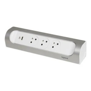 Blok gniazdowy narożny - design dostosowany do wpasowania przedłużacza w naroże mebla i ściany w kuchni lub biurze.