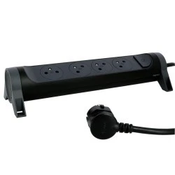 - 4 "płaskie" gniazda 2P+Z (3 ustawione pod kątem 45° i 1 odsunięte i ustawione pod kątem 90° do podłączenia np. zasilacza bez blokowania sąsiedniego gniazda)