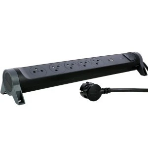 - 5 "płaskich" gniazd 2P+Z (4 ustawione pod kątem 45° i 1 odsunięte i ustawione pod kątem 90° do podłączenia np. zasilacza bez blokowania sąsiedniego gniazda)