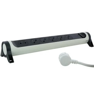 - 6 "płaskich" gniazd 2P+Z (5 ustawionych pod kątem 45° i 1 odsunięte i ustawione pod kątem 90° do podłączenia np. zasilacza bez blokowania sąsiedniego gniazda)