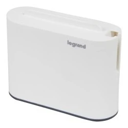 Rozgałęźnik 2P z gniazdami USB ze zintegrowaną podstawką do ustawienia smartfona.
