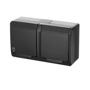 HERMES Gniazdo natynkowe podwójne z uziemieniem 2x2P+Z IP44 czarne 0322-09